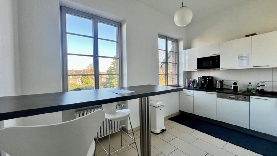 Die repräsentativen Büroräume befinden sich im 2. Obergeschoss. Die Gesamtfläche beträgt 30 m² und ist teilbar auf 16 bzw. 14 m²