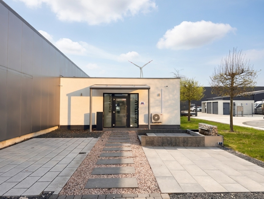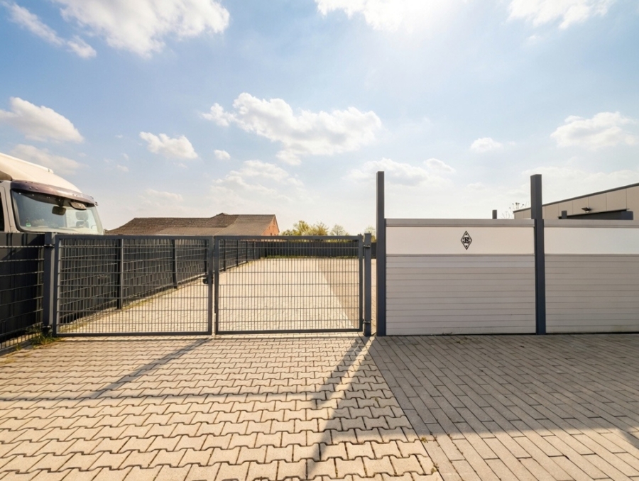 Die hier angebotene Halle mit Büroräumen und Außengelände befindet sich auf einem rundum eingezäunten Grundstück von 1'518 m². Die Außenflächen sind befestigt, das Grundstück ist mit folgenden Gebäudeteilen bebaut: