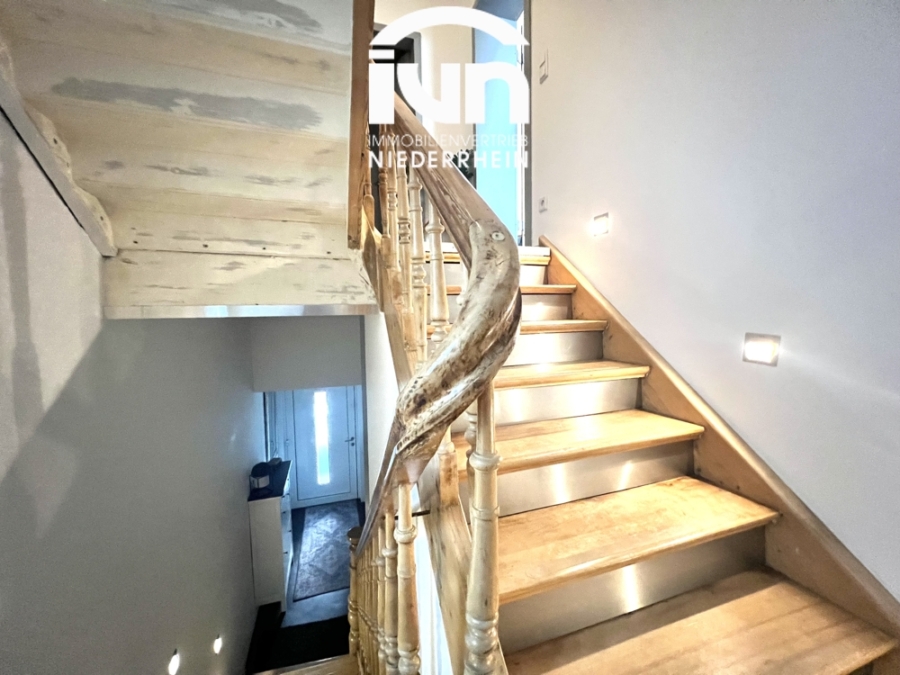 Auf der ersten Etage befindet sich eine Gäste Toilette. Eine weitere Treppe führt in das Obergeschoß, hier