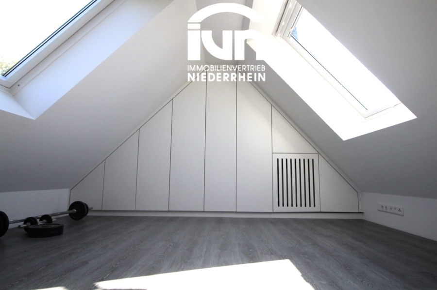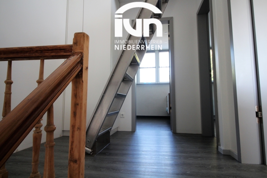 Aus der Diele dieser Etage führt eine Industrie-Stahlleiter in den perfekt ausgebauten Spitzboden. Dieser dient als Nutzfläche, Büro, Abstellfläche. (Der Raum ist in den Wohnflächen nicht berücksichtigt).